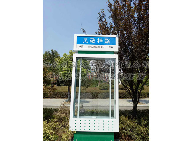 此款路名牌灯箱LMPDX-49主体采用镀锌钢结构,表面采用氟碳金属烤漆工艺,视窗面板采用钢化玻璃,灯箱内置LED灯。具有外形美观、表面耐腐蚀、抗风性能强、使用寿命长等优点。产品的样式、尺寸、颜色、材质、配置等均可按需定制。