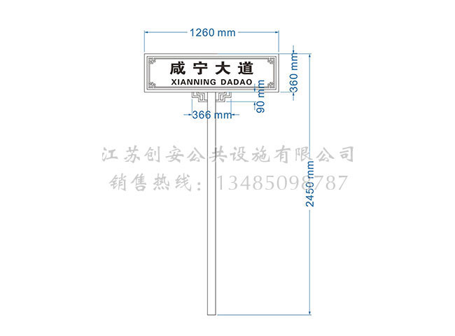 此款路名牌LMP-01采用镀锌钢结构,表面采用氟碳金属烤漆工艺,视窗面板采用钢化玻璃,灯箱内置LED灯。具有外形美观、表面耐腐蚀、抗风性能强、使用寿命长等优点。产品的样式、尺寸、颜色、材质、配置等均可按需定制。